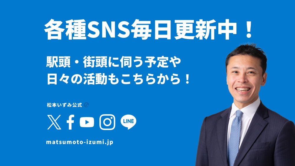 いつも松本いずみホームページをご覧いただき、誠にありがとうございます。 このたび、より多くの皆さまに活動内容や政策の想いをお伝えするため、新たにブログを開設いたしました。 ブログでは、日々の活動報告や政策の背景、皆さまからいただいたご意見への回答などを定期的に発信してまいります。また、地域や社会に関するさまざまなテーマについて、私自身の考えや取り組みも詳しくお伝えしていきます。 新ブ ...